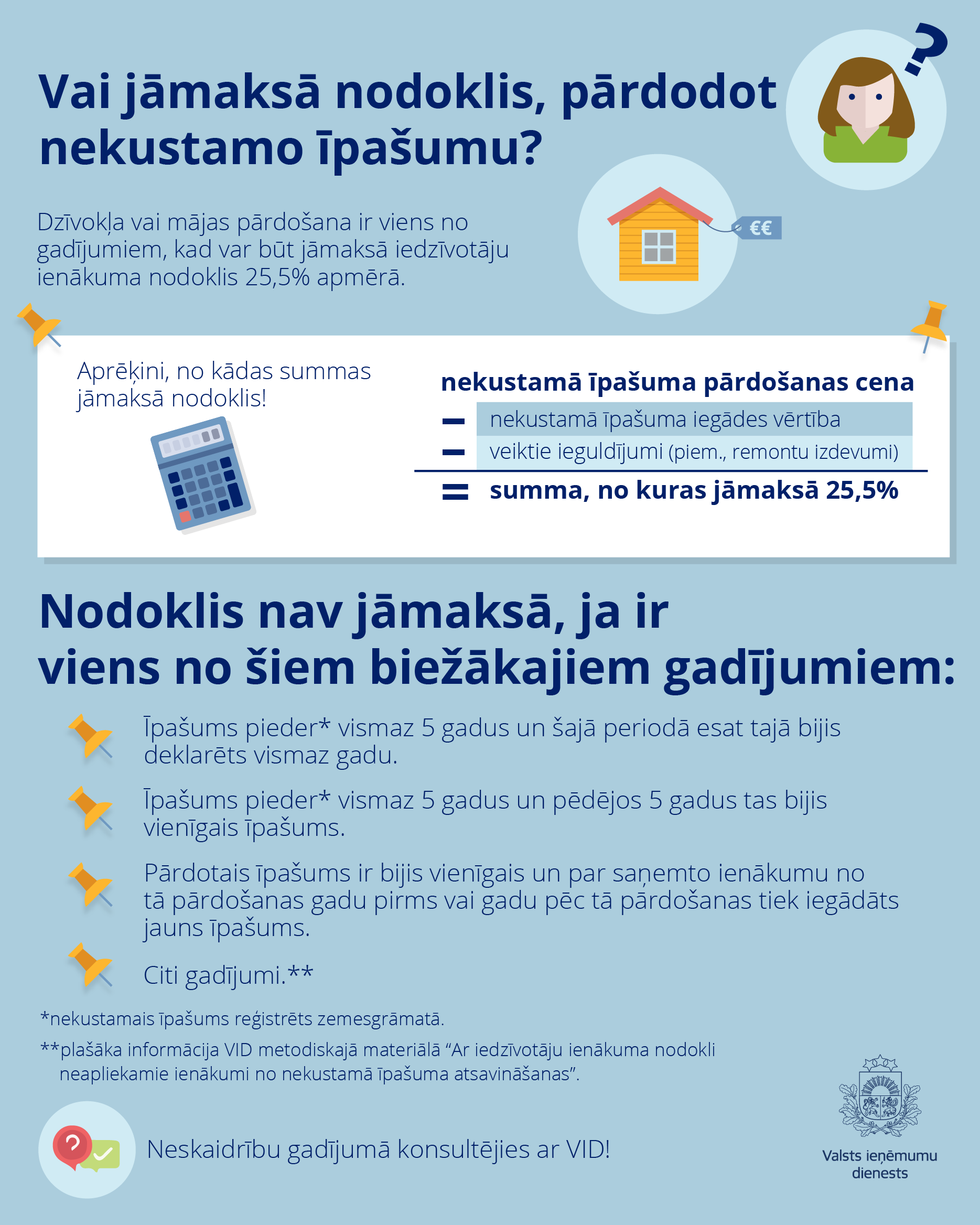 Iedzīvotāju ienākuma nodoklis nav jāmaksā, ja ienākums tiek gūts, atsavinot (pārdodot) nekustamo īpašumu, kas: