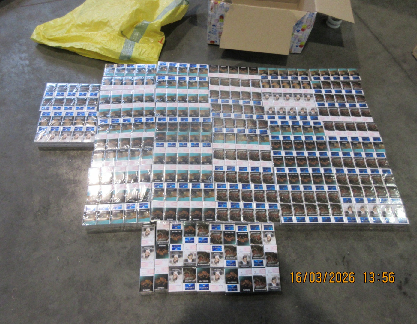 Pēc dažām dienām, veicot ievesto kravu pārbaudi, muitas amatpersonas noliktavā konstatēja pasta maisus, kuros atradās 3250 paciņas cigarešu (65 000 cigaretes) "Parliament" un "Sobranie", kas marķētas ar Kirgīzu Republikas un Uzbekistānas Republikas akcīzes nodokļa markām. Šie sūtījumi bija paredzēti nogādāšanai uz Itāliju un Beļģiju.